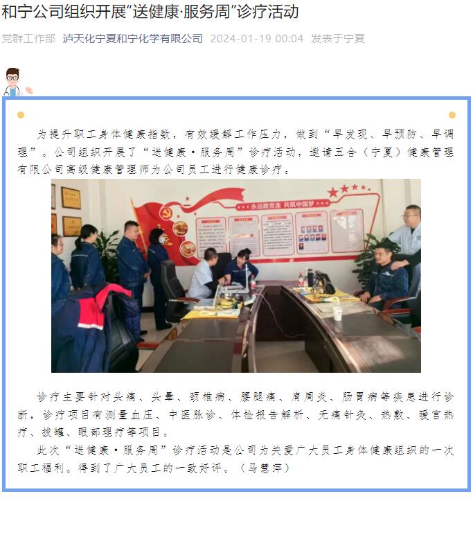 和寧公司組織開展“送健康·服務(wù)周”診療活動