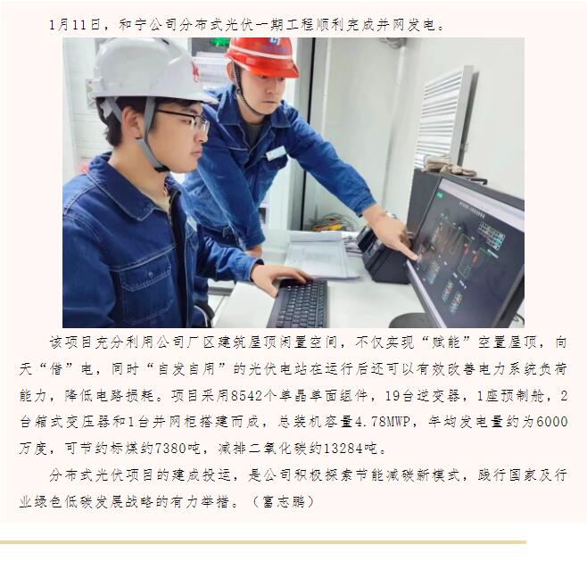 和寧公司分布式光伏發(fā)電成功并網(wǎng)