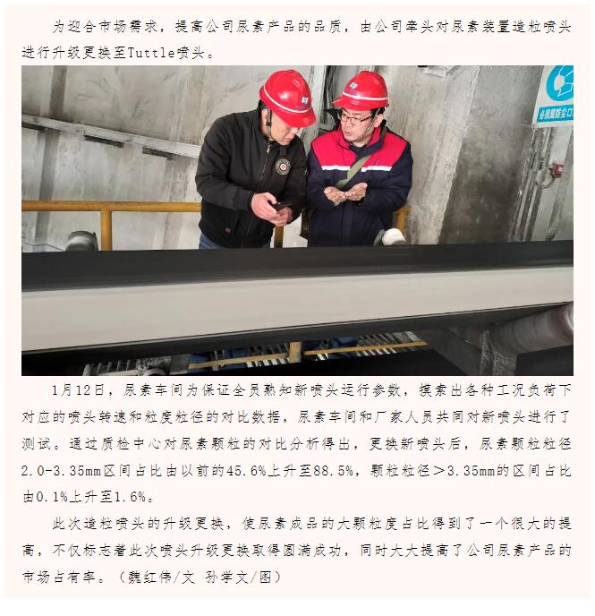 尿素車間開展Tuttle造粒噴頭調試及投運工作