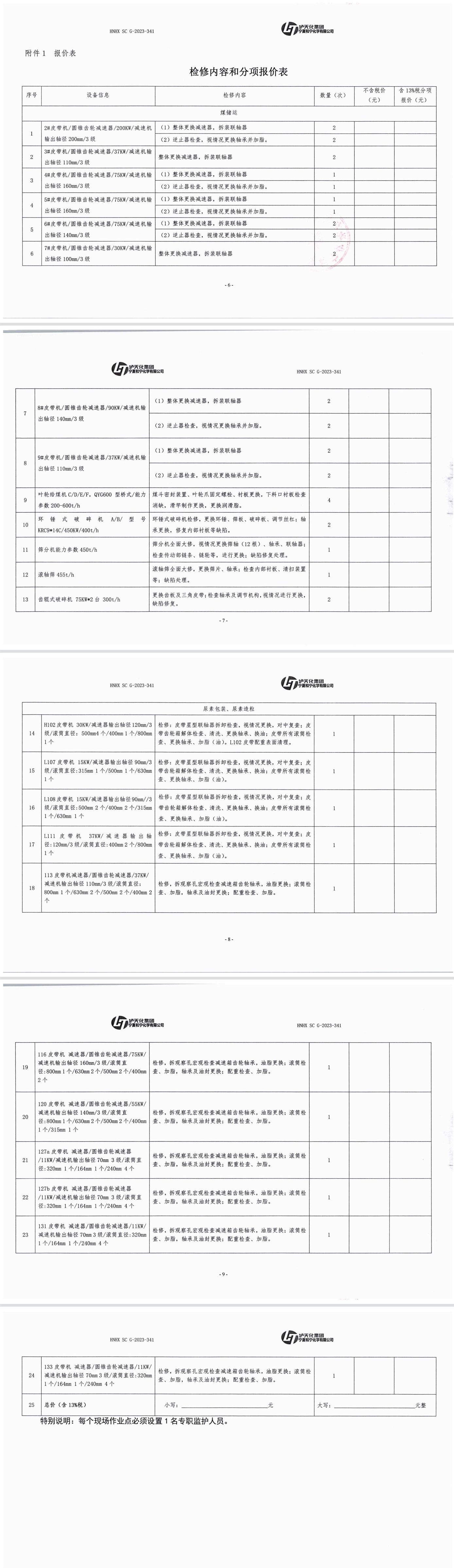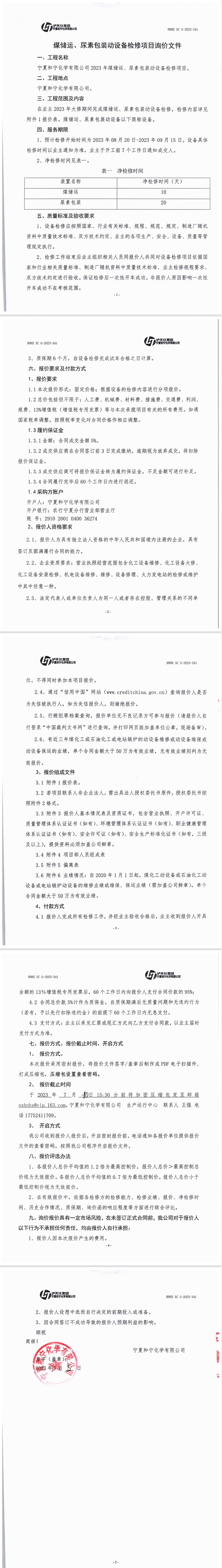 煤儲運、尿素包裝動設備檢修項目詢價文件