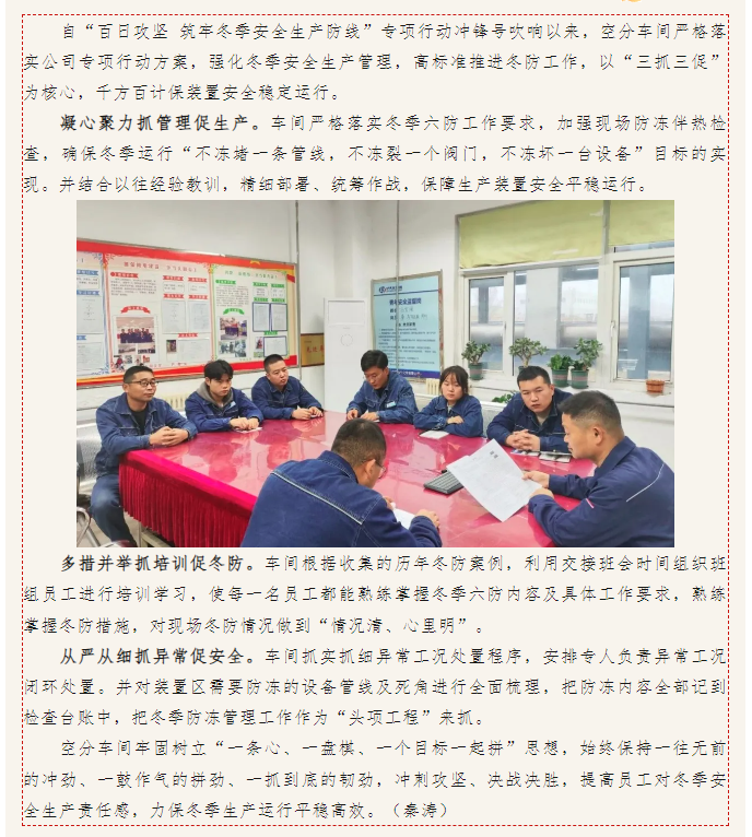 空分車間“三抓三促”引領(lǐng)筑牢冬季安全生產(chǎn)防線