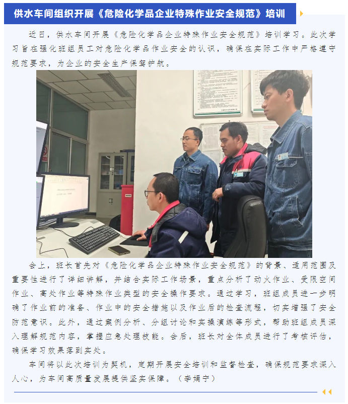 供水車間組織開展《危險化學品企業特殊作業安全規范》培訓