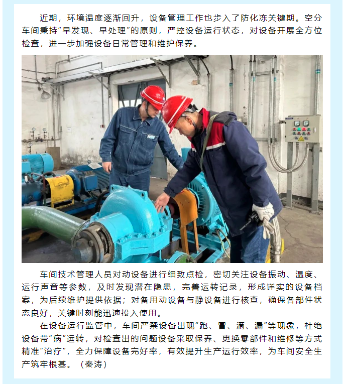 空分車間加強設(shè)備檢查,護(hù)航春季安全生產(chǎn)