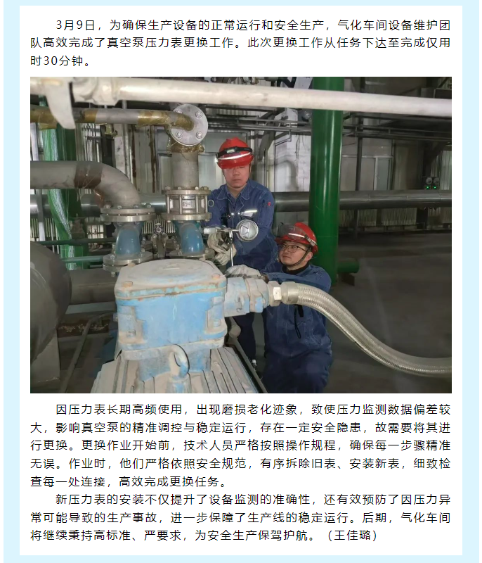 高效完成真空泵壓力表更換,保障生產(chǎn)安全穩(wěn)定