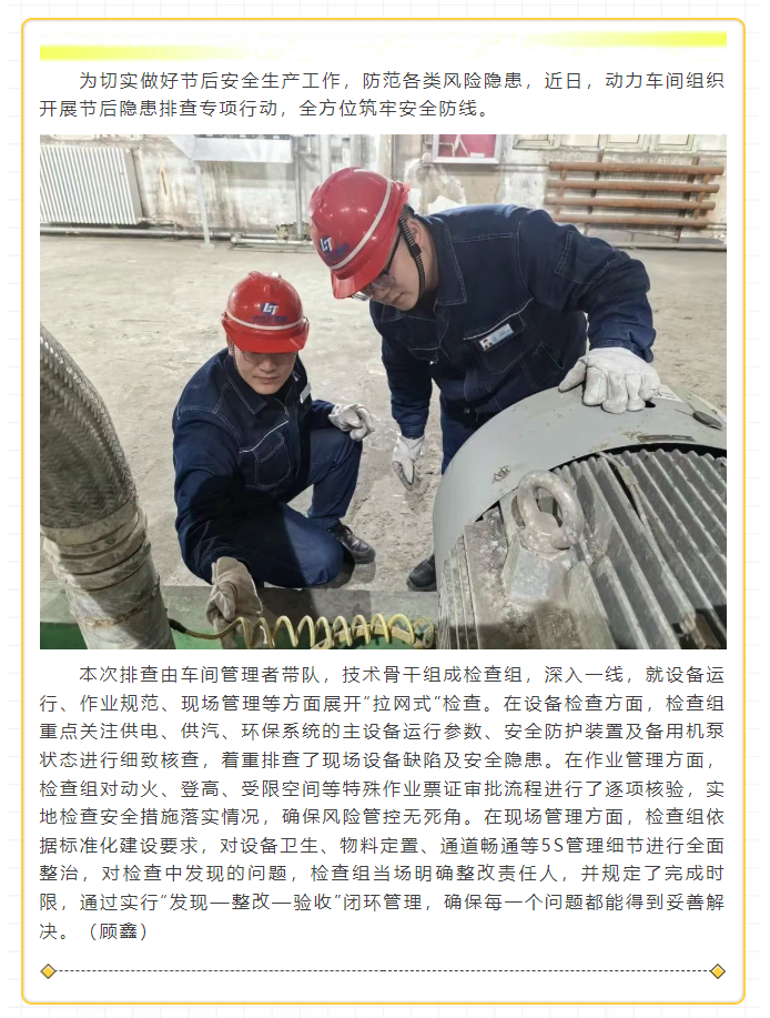 動力車間開展節后隱患排查 擰緊安全生產“責任閥”