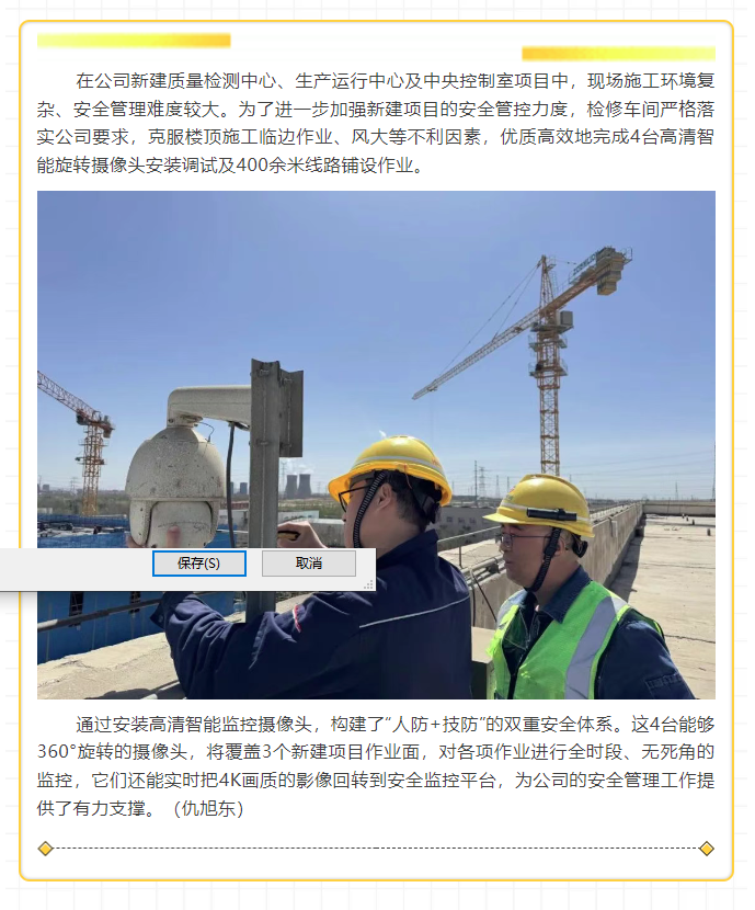檢修車間成功完成新建項(xiàng)目監(jiān)控?cái)z像頭安裝工作
