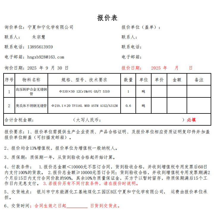 寧夏和寧化學有限公司大修用無縫管采購詢價書.pdf [全文]