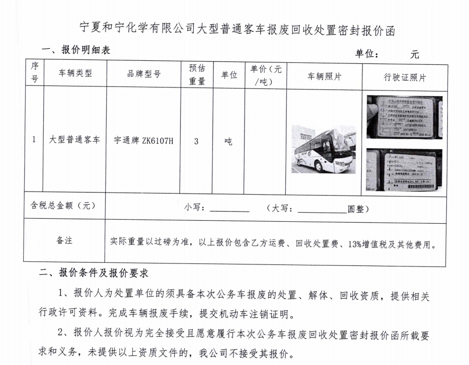 寧夏和寧化學(xué)有限公司大型普通客車報(bào)廢回收處置密封報(bào)價(jià)函.pdf寧夏和寧化學(xué)有限公司大型普通客車報(bào)廢回收處置密封報(bào)價(jià)函.doc [全文]