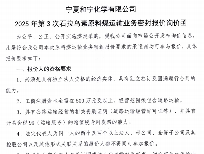 寧夏和寧化學(xué)有限公司2025年第2次石拉烏素原料煤運(yùn)輸業(yè)務(wù)密封報(bào)價(jià)詢價(jià)函.pdf [全文]