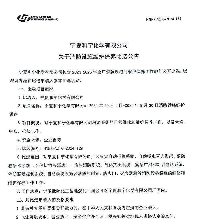 寧夏和寧化學(xué)有限公司關(guān)于消防設(shè)施維護(hù)保養(yǎng)比選公告.pdf [全文]