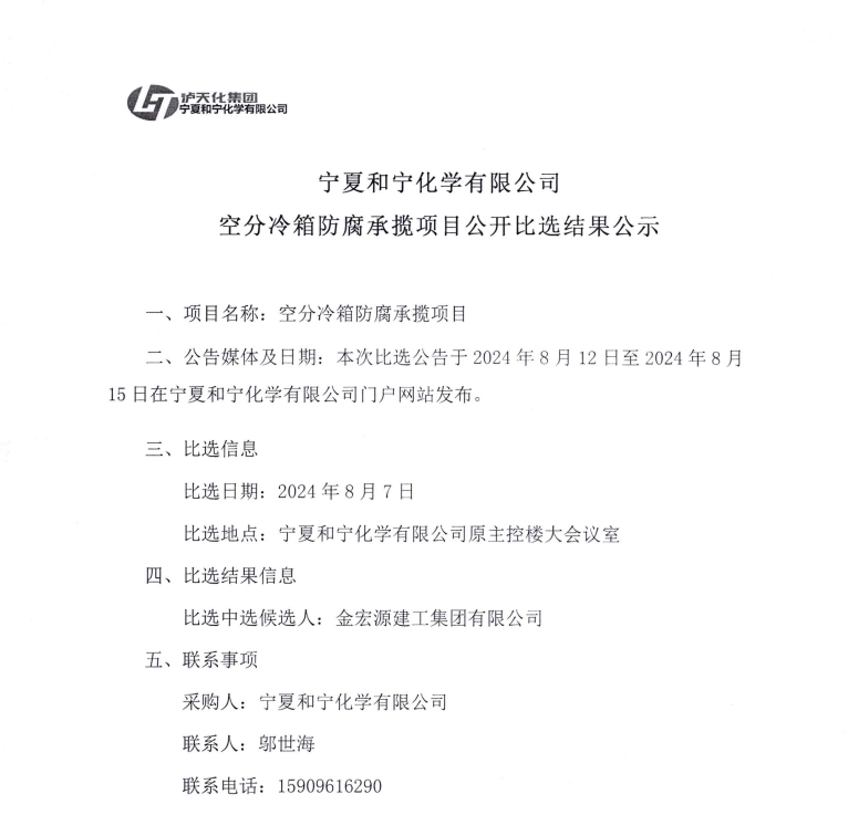 寧夏和寧化學(xué)有限公司空分冷箱防腐承攬項(xiàng)目公開比選結(jié)果公示.pdf [全文]