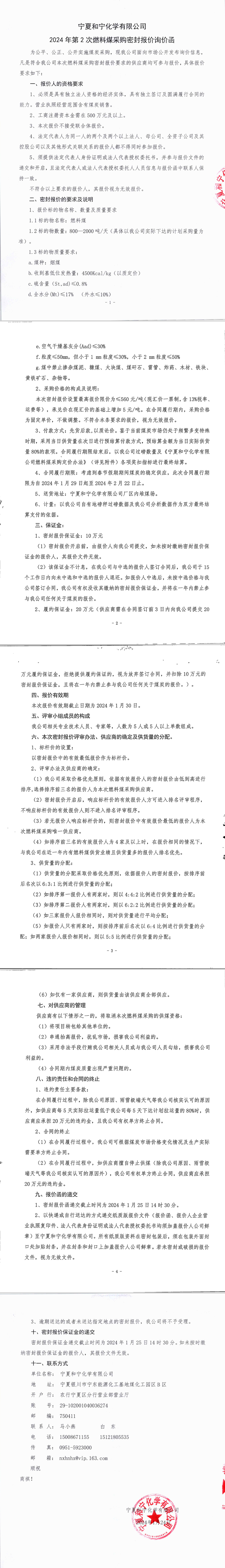 寧夏和寧化學有限公司2024年第2次燃料煤采購密封報價詢價函附件.pdf [全文]
