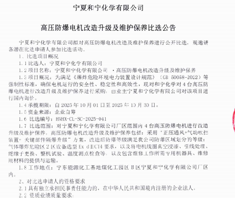 寧夏和寧化學(xué)有限公司高壓防爆電機(jī)改造升級(jí)及維護(hù)保養(yǎng)比選公告.pdf [全文]
