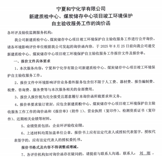 寧夏和寧化學(xué)有限公司新建質(zhì)檢中心、煤炭?jī)?chǔ)存中心項(xiàng)目竣工環(huán)境保護(hù)自主驗(yàn)收服務(wù)工作的詢(xún)價(jià)函.pdf [全文]