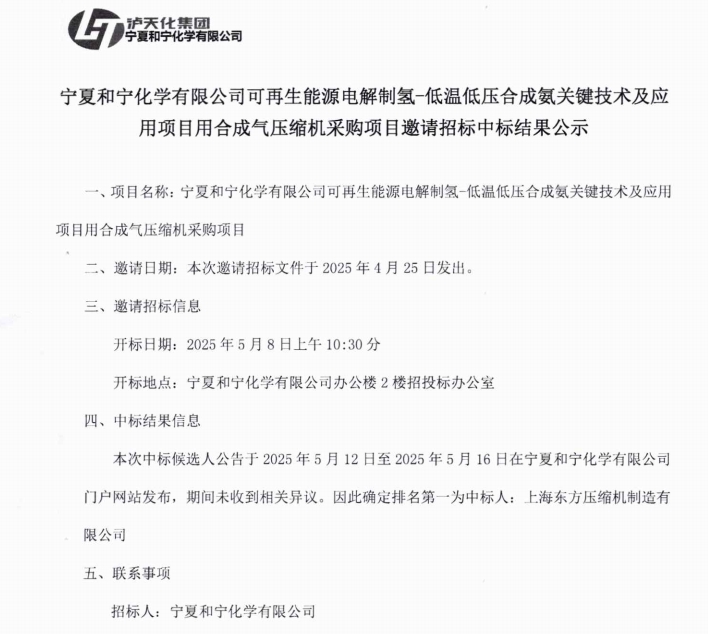 寧夏和寧化學(xué)有限公司可再生能源電解制氫-低溫低壓合成氨關(guān)鍵技術(shù)及應(yīng)用項(xiàng)目用合成氣壓縮機(jī)采購項(xiàng)目邀請招標(biāo)中標(biāo)結(jié)果公示.pdf [全文]