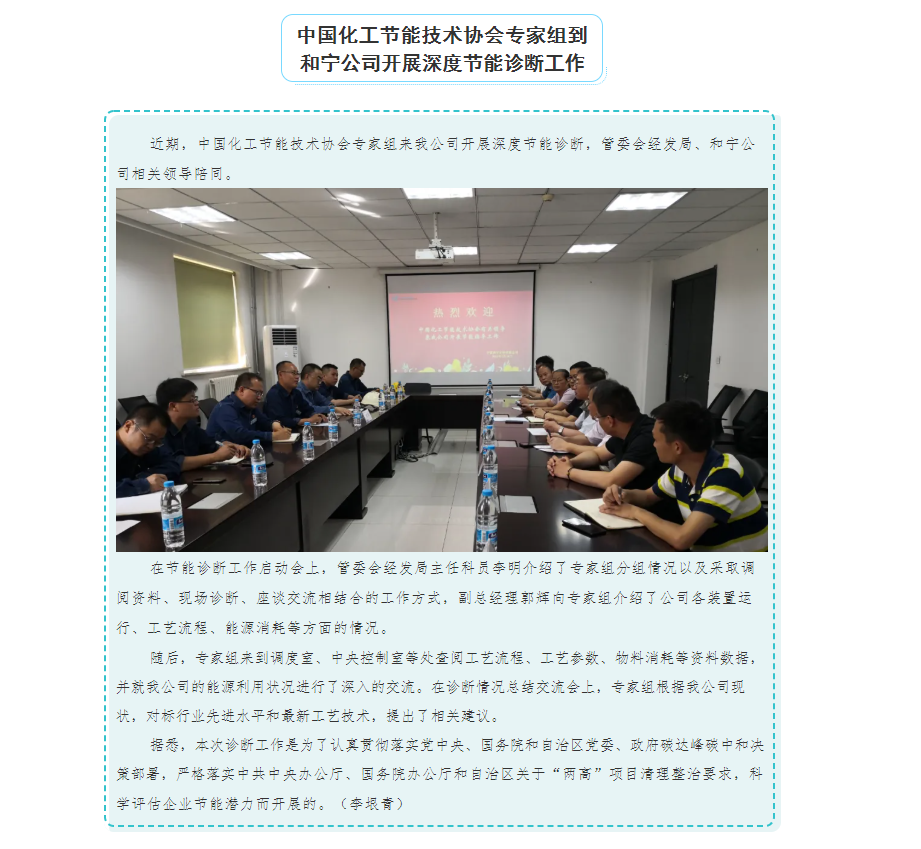 中國化工節(jié)能技術(shù)協(xié)會專家組到和寧公司開展深度節(jié)能診斷工作