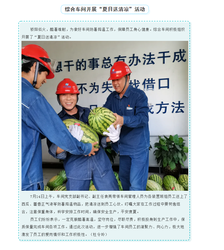 綜合車間開展“夏日送清涼”活動