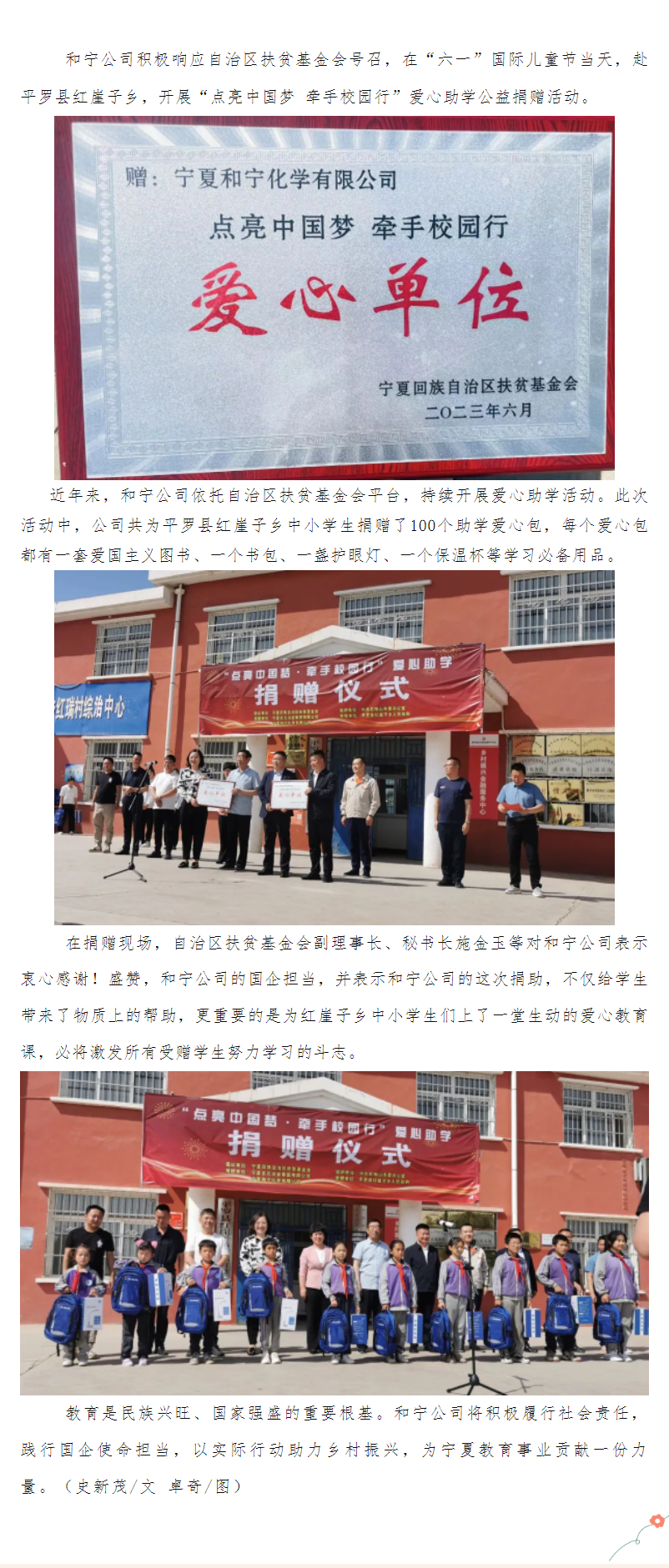 和寧公司開(kāi)展“點(diǎn)亮中國(guó)夢(mèng) 牽手校園行”愛(ài)心助學(xué)公益捐贈(zèng)活動(dòng)