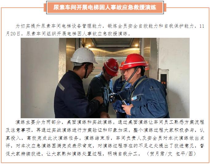 尿素車間開展電梯困人事故應(yīng)急救援演練