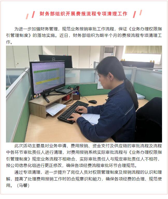 財(cái)務(wù)部組織開展費(fèi)報(bào)流程專項(xiàng)清理工作
