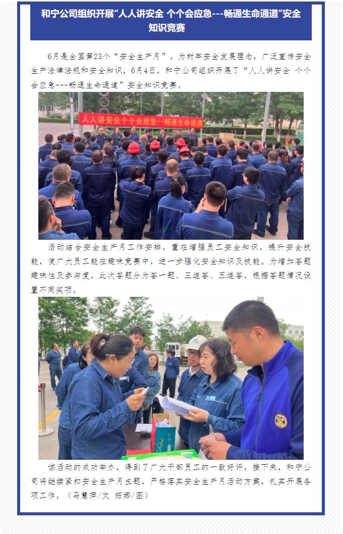 和寧公司組織開展“人人講安全 個個會應急---暢通生命通道”安全知識競賽