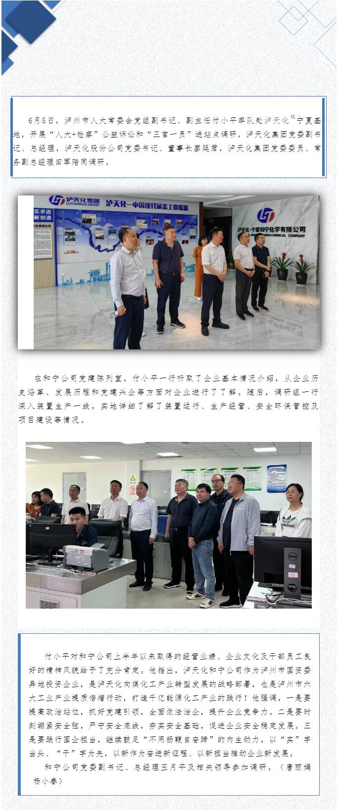 瀘州市人大常委會副主任付小平率隊調研瀘天化寧夏基地