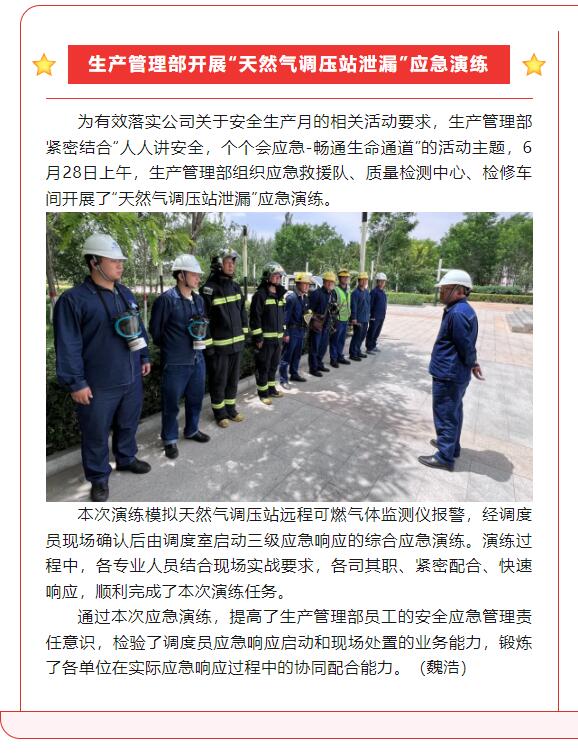 生產管理部開展“天然氣調壓站泄漏”應急演練