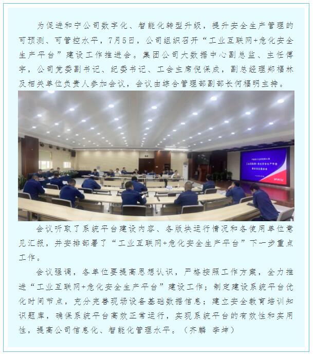 和寧公司組織召開“工業(yè)互聯(lián)網(wǎng)+危化安全生產(chǎn)平臺(tái)”建設(shè)工作推進(jìn)會(huì)