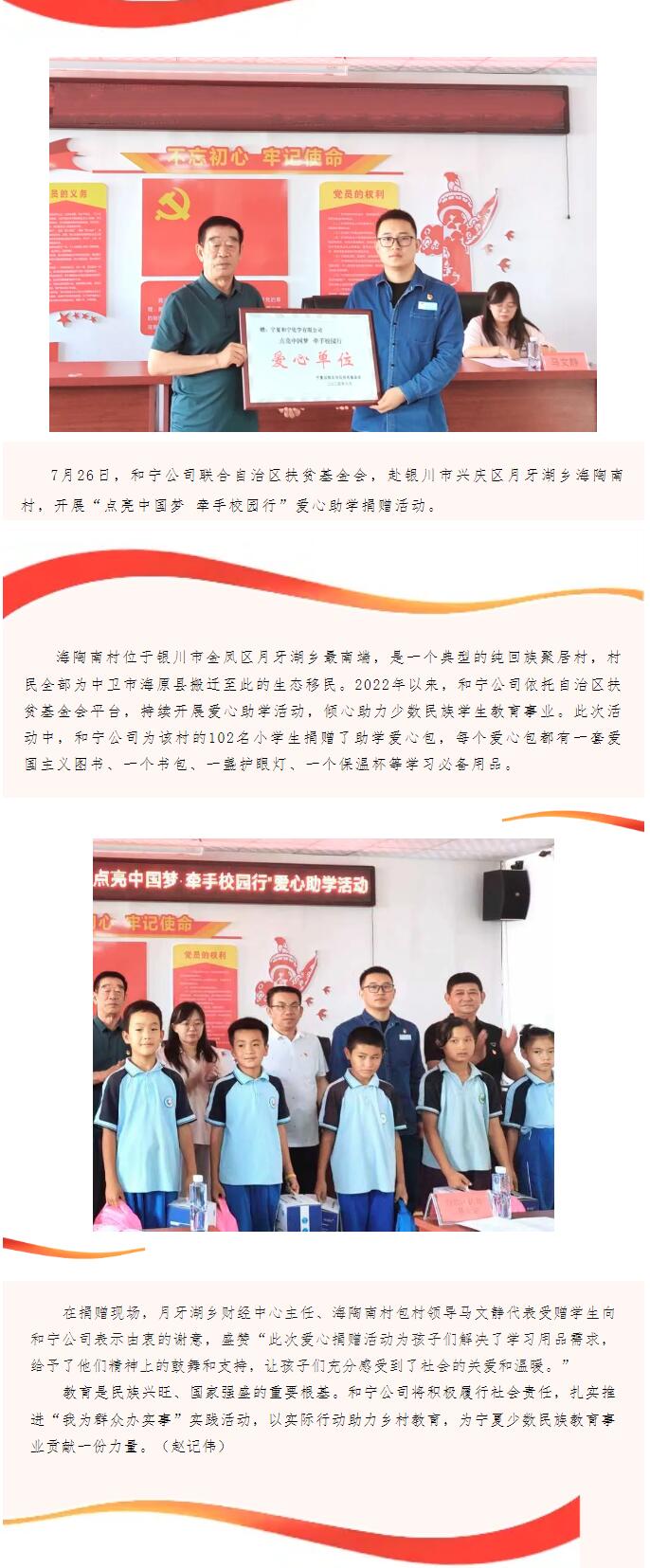 和寧公司開展“點亮中國夢 牽手校園行”愛心助學(xué)公益捐贈活動