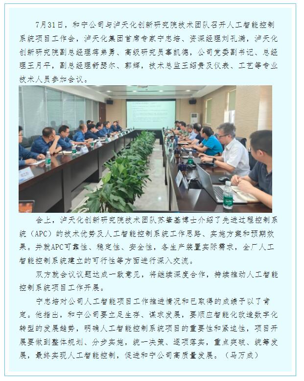 和寧要聞丨和寧公司召開人工智能控制系統項目工作會