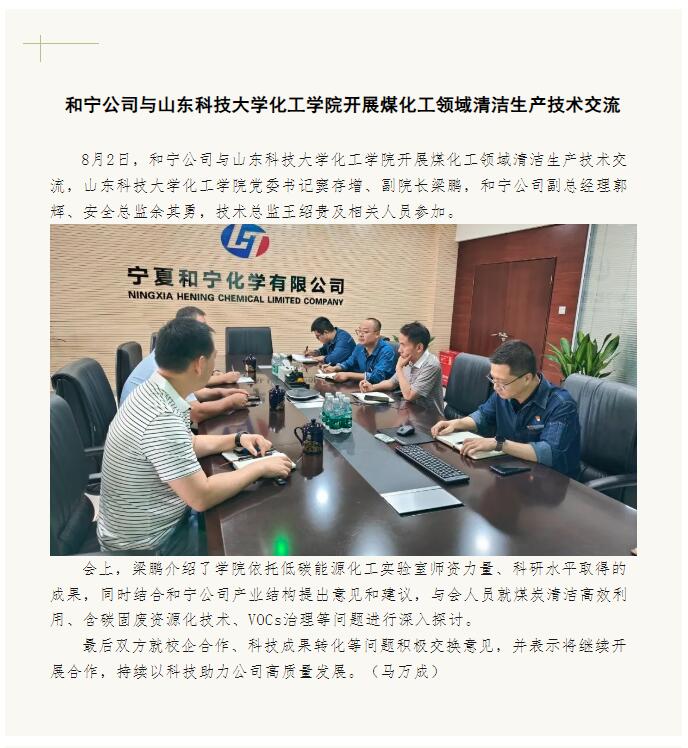 和寧公司與山東科技大學化工學院開展煤化工領域清潔生產技術交流