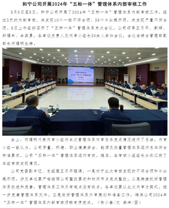 和寧公司開展2024年“五標一體”管理體系內部審核工作