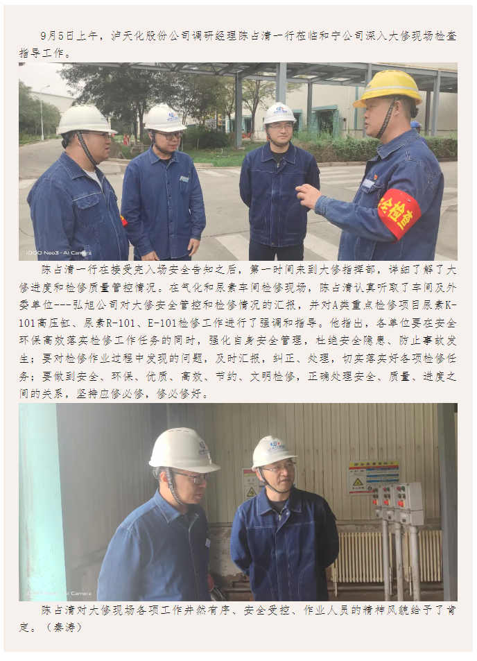 陳占清一行蒞臨和寧公司檢查指導(dǎo)大修工作