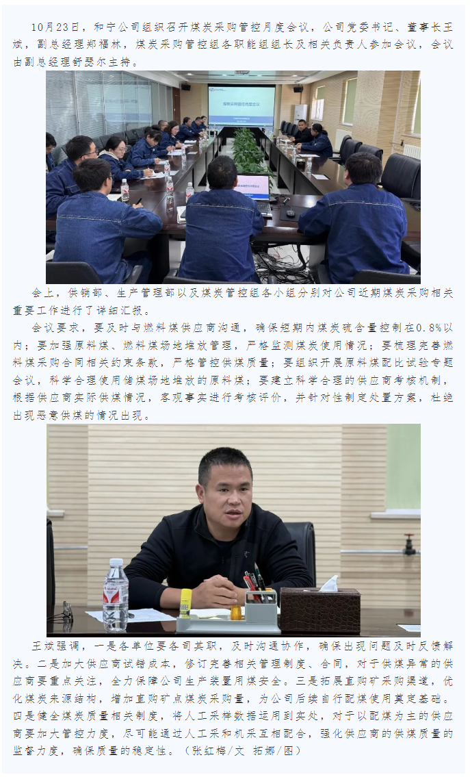 公司組織召開煤炭采購管控月度會議