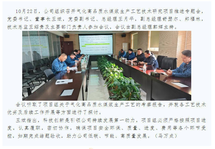 公司召開氣化高品質(zhì)水煤漿生產(chǎn)工藝技術(shù)研究項(xiàng)目推進(jìn)會(huì)