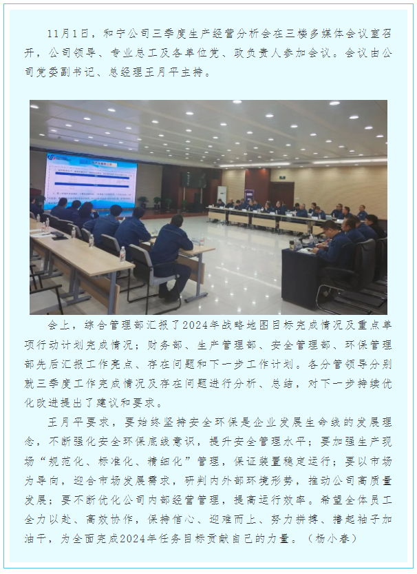 公司召開(kāi)三季度生產(chǎn)經(jīng)營(yíng)分析會(huì)