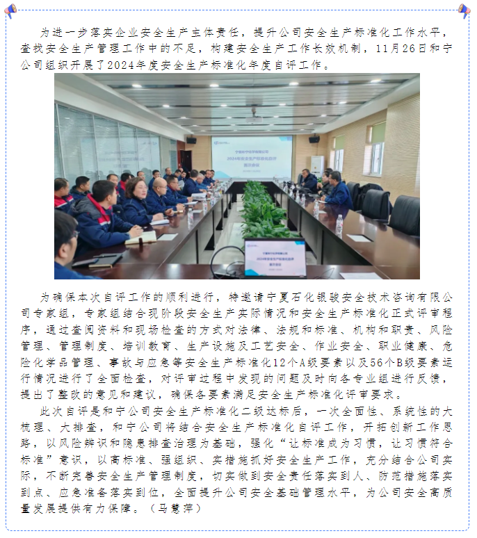 和寧公司組織開展安全生產(chǎn)標(biāo)準(zhǔn)化年度自評工作