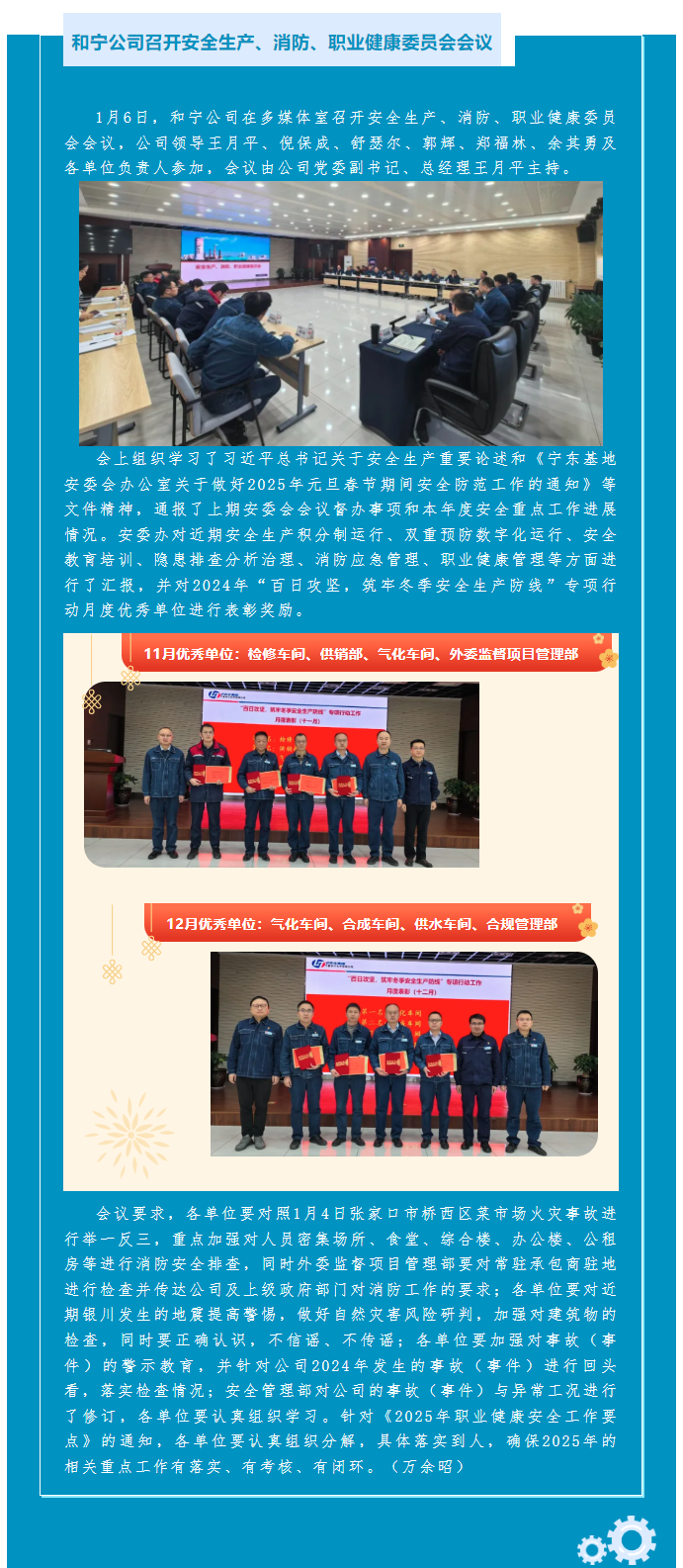 和寧公司召開安全生產、消防、職業健康委員會會議