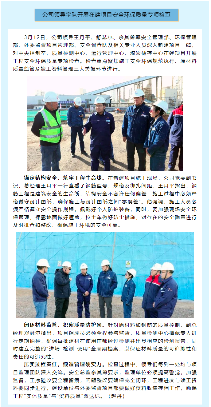 公司領導率隊開展在建項目安全環保質量專項檢查