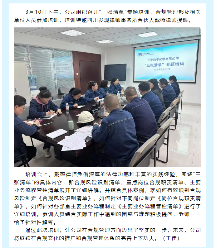 公司開展合規(guī)管理體系“三張清單”專題培訓