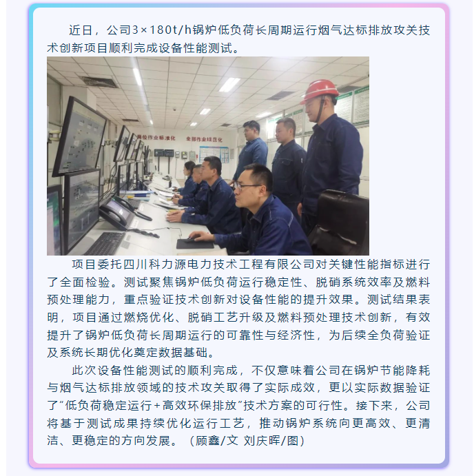 公司3×180t/h鍋爐低負荷長周期運行煙氣達標排放攻關(guān)技術(shù)創(chuàng)新項目順利完成性能測試