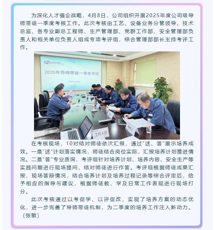 嚴考促學礪精兵 導師帶徒助成長——公司開展2025年導師帶徒一季度考核