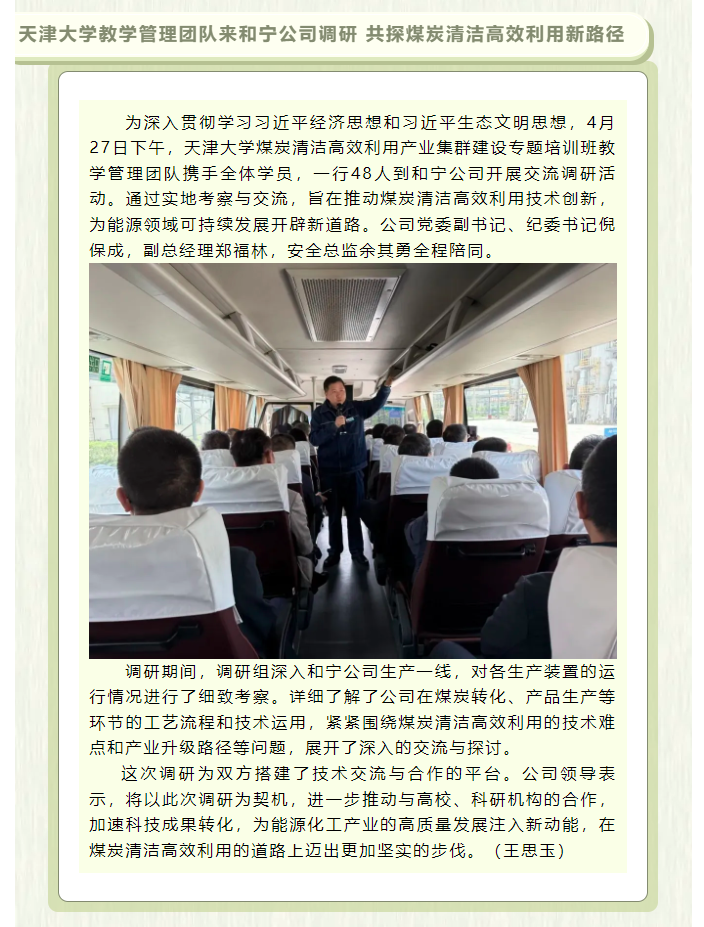 天津大學教學管理團隊來和寧公司調研 共探煤炭清潔高效利用新路徑