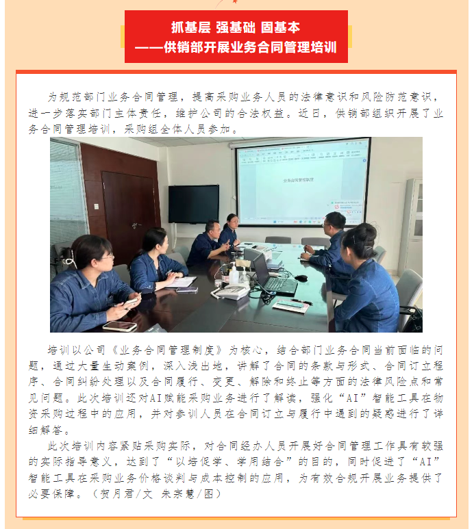 抓基層 強(qiáng)基礎(chǔ) 固基本 ——供銷部開展業(yè)務(wù)合同管理培訓(xùn)