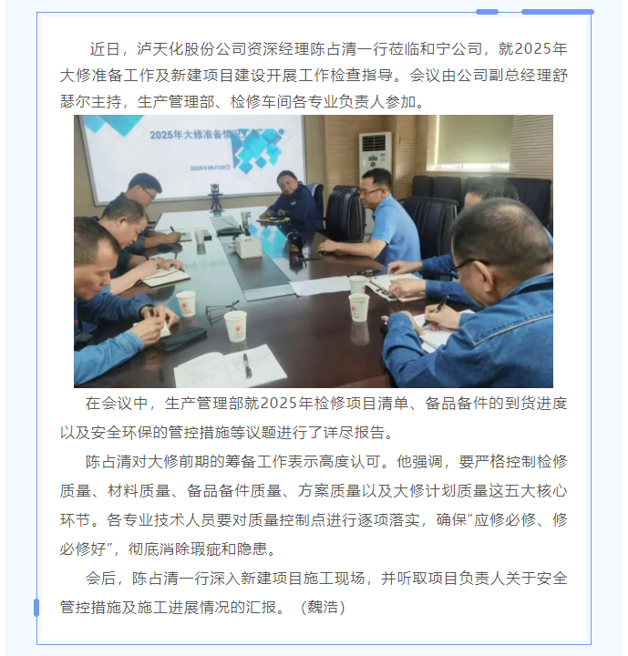 陳占清一行蒞臨和寧公司檢查指導(dǎo)工作