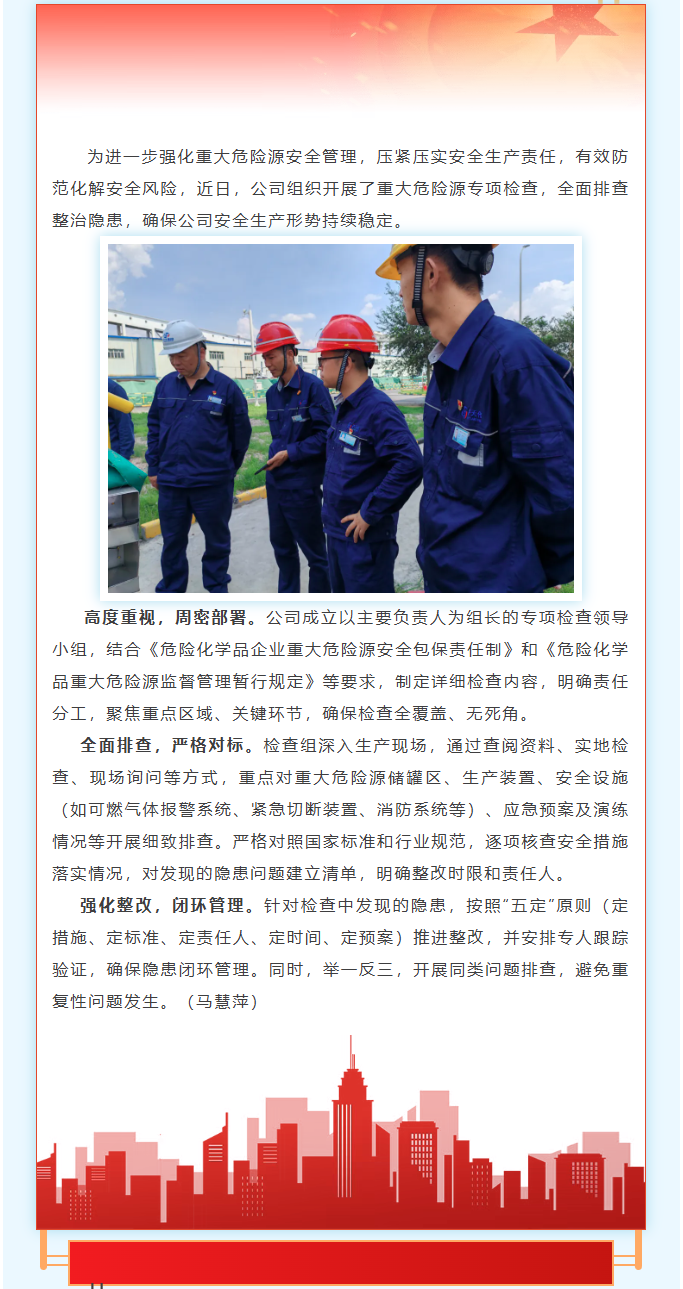 公司扎實開展重大危險源專項檢查
