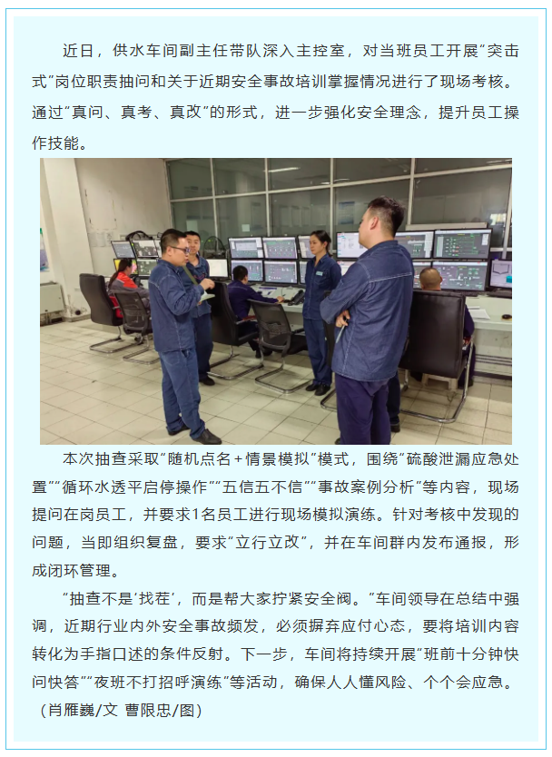 供水車(chē)間“以查促學(xué)”筑牢安全防線