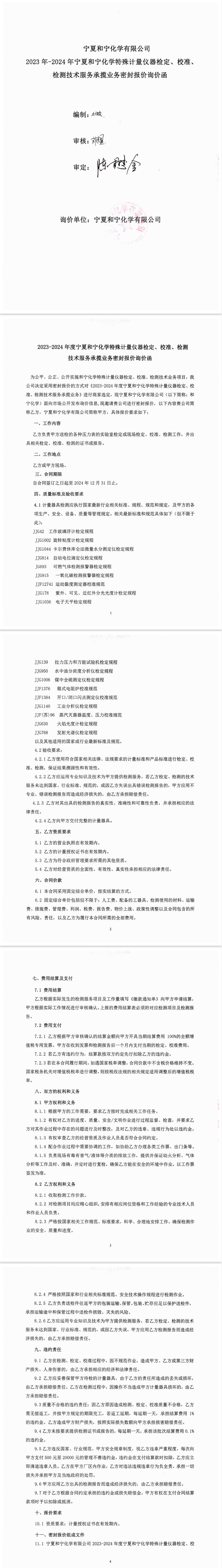 2023年-2024年寧夏和寧化學特殊計量儀器檢定、校準、檢測技術服務承攬業務詢價文件