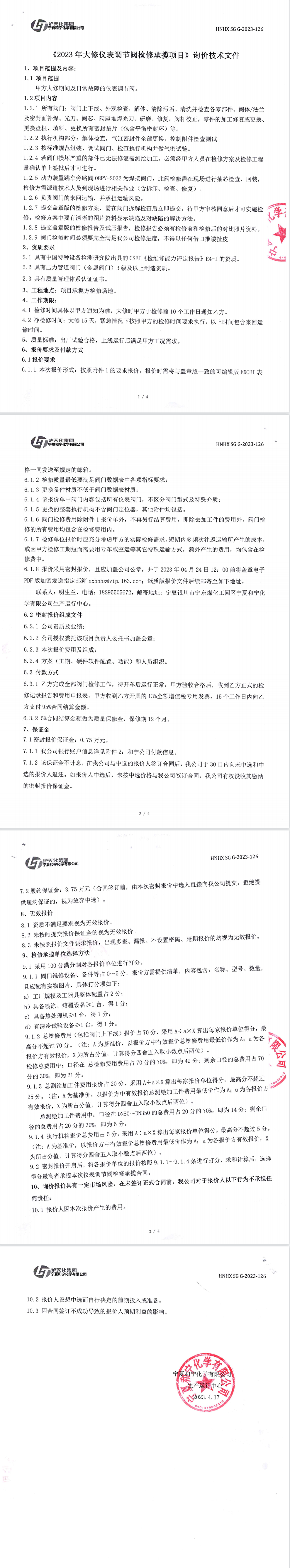 2023年大修儀表調節閥檢修承攬項目詢價文件
