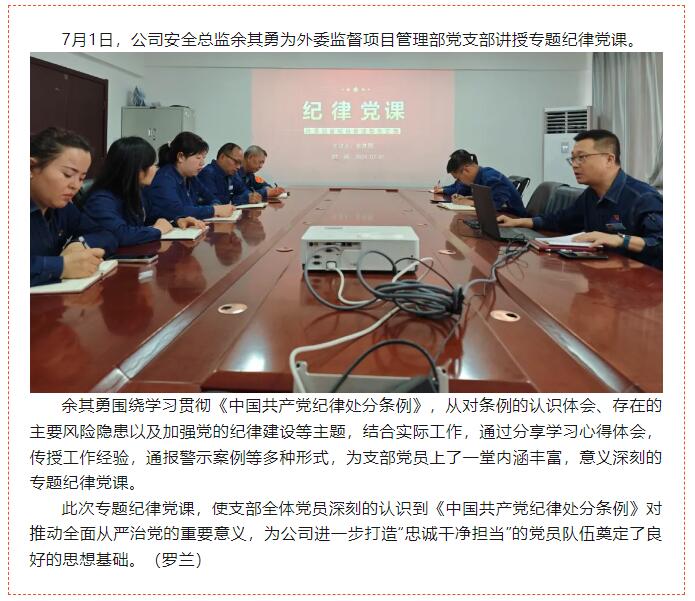 外委監督項目管理部黨支部對口領導講紀律黨課